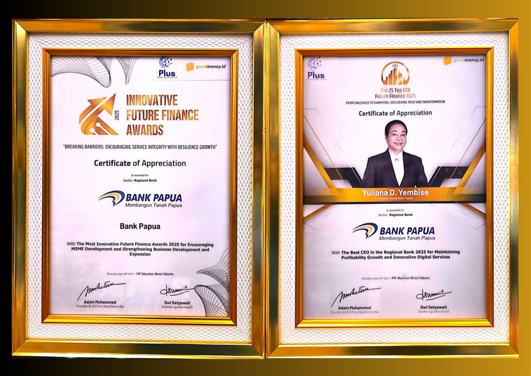 Dalam kesempatan tersebut, Bank Papua mendapatkan 2 (dua) penghargaan yaitu The Most Innovative Future Finance Awards 2025 for Encouraging MSME Development and Strengthening Business Development and Expansion, untuk sector Regional Bank serta The Best CEO in the Regional Bank 2025 for Maintaining Profitability Growth and Innovative Digital Services kepada Yuliana D. Yembise, Direktur Utama Bank Papua.