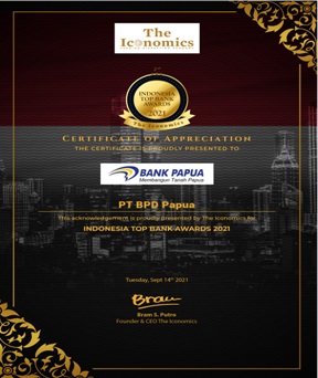 Bank Papua menerima 'Penghargaan TOP Bank Award 2021, Kategori = Buku 2' yang merupakan suatu bentuk apresiasi The Iconomics kepada bank-bank terbaik di Indonesia dalam beradaptasi untuk menghadapi perubahan yang terjadi secara global maupun perubahan regulasi di Indonesia, diserahkan pada acara "Top Bank Awards 2021 & Webinar Strategi Bisnis Wealth Management di Masa Pandemi” pada tanggal 14 September 2021 di secara zoominar dan disiarkan melalui youtube iconomics TV