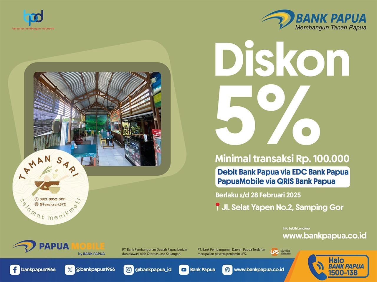 - Syarat & Ketentuan : Minimal transaksi Rp. 100.000 dan menggunakan kartu debit Bank Papua melalui EDC dan Aplikasi Papua Mobile pada menu QRIS